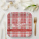 This modern grunge tartan pattern, featuring classic shades of red, white, and gold offers a sophisticated yet cosy aesthetic, perfect for adding a touch of warmth and style to your holiday. Shown here on a Christmas paper plates, the harmonious blend of colours of this versatile pattern would suit everything from decor to personal accessories, so use our transfer option to move it to your favourite Zazzle products. Whether you're decorating for a festive occasion or looking to elevate everyday items, this charming tartan design brings a touch of traditional flair to your holiday. Personalise with a favourite Christmas greeting, name and year. Search ID1009 to see other products and patterns in this colour scheme.