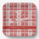 Red Gold Christmas Plaid Pattern#2 ID1009 Paper Plate