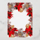 This design was inspired by photos of fresh flowers. Festive poinsettias wrap around your invitation with gold outlines. What looks like stained glass is a wonderful frame for your Christmas greeting!