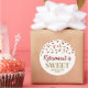 Retirement is sweet favour tag sticker with red and gold confetti pattern.