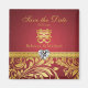 Red & Gold Damask, Chinese Double Happiness "Save the date" wedding fridge magnets.