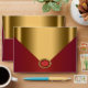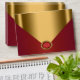 Red and gold invitation and announcement size envelope. Choose from red or gold interior - both are included and simply make your selection as you customise for your order.