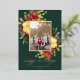 A foiled festive floral holiday card featuring watercolor floral arrangements with berries and leaves, with real gold foil, on a dark green background. The headline reads "happy holidays" in white modern calligraphy font. Personalise with 3 of your photos and personal message.