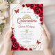 Red, gold and white floral Quinceanera invitation. Features, script font, gold butterflies, watercolor roses and tiara. Perfect for an elegant chic princess style glam celebration. Personalise with your own details. Printed Zazzle invitations or instant download digital printable template.