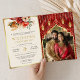 Red Gold Floral Curtain Indian Hindu Wedding Invitation
