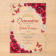 Red gold Quinceanera celebration invitation. Features, script font, gold butterflies, watercolor roses and tiara. Perfect for an elegant princess style glam celebration. Personalize with your own details. Stylish transparent or frosted acrylic invitations.