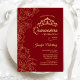 Red Gold Floral Quinceanera Birthday Party Invitation. Minimalist modern design featuring botanical outline drawings accents and typography script font. Simple trendy invite card perfect for a stylish female 15th bday celebration. Can be customised to any age. Printed Zazzle invitations or instant download digital printable template.