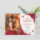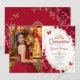 Red, gold and white Quinceanera celebration invitation with photo. Features, script font, gold butterflies, watercolor roses and tiara. Perfect for an elegant princess style glam celebration. Personalise with your own details. Printed Zazzle invitations or instant download digital printable template.