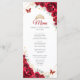 Red, gold and white Quinceanera celebration slim double sided program and menu card. Features, script font, gold butterflies, watercolor roses and tiara. Perfect for an elegant princess style glam celebration. Personalise with your own details.