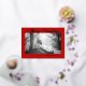 Red is the colour for fall 2023. Bring this bold colour into your Christmas card with this cheery Christmas tree pattern back and gold foil lettering.