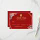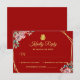 Red gold geometric floral wreath Chinese wedding RSVP Card