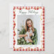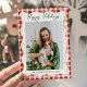 Red & Gold Gingham Pattern Happy Holidays 1 Photo Holiday Card