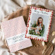 Red & Gold Gingham Pattern Merry Christmas 1 Photo Holiday Card