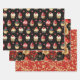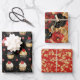 Red Gold Glam Cupcakes Flowers Birthday Wrapping Paper Sheet