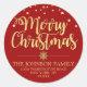 RED Gold Glitter Confetti Merry Christmas Address Classic Round Sticker
