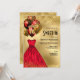 Red Gold Glitter Tiara Dress Sweet 16 Birthday Invitation