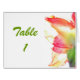 Gorgeous table number cards for engagement, bridal shower, wedding, anniversary, and more. Customise green script with appropriate table number. Fine art photography captures these beautiful amaryllis flower petals as they form a lovely abstract pattern. Soft gold, red, orange, yellow and green colours are featured with backlighting from the sun against a white background, creating a translucent effect.