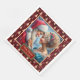Make your holiday table unforgettable with these festive Christmas napkins, featuring Mr. & Mrs. Claus surrounded by shimmering gold Christmas trees. The red, gold, and green colour scheme adds a classic and elegant holiday touch to any table setting.