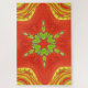 Central Element: At the heart of the piece is a striking six-pointed red star (or hexagon with pointed extensions). Within this star, smaller stylized green heart shapes add a layer of meaning and warmth.