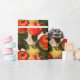 How about those apples? This red, burgundy, and golden apple fruit pattern reminds one of fall harvests and autumn bounty. This artwork is based on a repeat tiled pattern of vintage apples from an early 1900s harvest catalogue, set against a background of distressed pale peach ephemera with cursive handwriting. This fruit pattern is a fresh alternative to floral paper, and it would be a great way to wrap up teacher appreciation gifts.