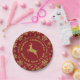 Red Gold Holiday Snowflake Reindeer Paper Plate