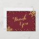 A modern style with colourful bokeh dots, gold stars and snowflakes and swirl watermarks. The background colour is a festive cranberry red. The front has a calligraphy hand written style font that says Thank You. Personalise this Christmas holiday flat card for your thank you notes. They are also great to say thanks and show appreciation after a bridal shower, wedding, birthday.