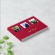 A red background, gold foil text. Personalise and add 3 photos, your name, class of, and school name.
