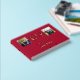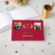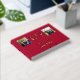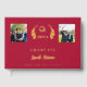 A red background, gold foil text. Personalise and add 2 photos, your name, class of, and school name. Decorated with a laurel wreath, and a cap.