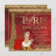 Paris baby shower invitation with beautiful gold Eiffel Tower, elegant red and gold Paris gift packages, sweet baby girl with white tutu and a string of pearls, fancy gold Paris script on a rich red and gold lace background. This beautiful Paris baby shower invitation is easily customised for your event by simply adding your details in the font style and colour, and wording of your choice. This is a printed design with no real lace, diamonds, jewels, glitter, etc.