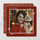 Elegant red and gold photo Meowy Christmas card featuring gilded paw prints. Easily personalise this elegant photo holiday card with your photo and names.