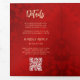 This elegant bilingual Chinese wedding invitation features an artistic gold double happiness symbol on a floral ruby red shimmering background. Bride and groom names in an elegant handwritten script. Chinese wedding invitation or tea ceremony invitation. With your photo in the centre of the tri-fold wedding invitation and a traditional Chinese text at the right inner side. At the backside are the details and a scannable qr code for your wedding website.