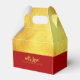 Original party favour box (gable model) for The Chinese New year of the Pig 2019. Golden and transparent background with red Chinese papercut of a pig into a golden circle + customisable texts (in front) and Message + family name (in back). You can easily change texts (font, colour, size and position) and background colour (here dark red) by clicking the customise button. Matching paper napkin, craft products, invitations, greeting card and more...Perfect for Chinese New year of the Pig 2019.--- "The Pig (豬) is the twelfth and the last sign of the Earthly Branches (亥). In the continuous Sexagenary cycle, every twelfth year corresponds to Hai, and is commonly called "the Year of the Pig" (豬年). There are five types of Pigs, named after the Chinese elements. In order, they are: Metal, Water, Wood, Fire, and Earth.