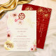 This elegant floral Chinese wedding invitation features a real gold foil line art flowers and pink cherry blossoms on a cream background. With a traditional Chinese backside text.