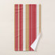 Add a chic and cheerful flair to your Christmas celebrations with this stunning pinstriped pattern. Featuring thin, vertical stripes that vary in width and spacing to create a sophisticated Christmas design. In traditional red, gold, and white, this bath towel design brings a festive and elegant look to any bathroom setting. The vibrant red stripes capture the joyful spirit of the season, while the shimmering gold adds a luxurious touch that has a timeless appeal. Search ID1009 to see other products and patterns in this colour scheme.