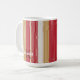 Add a chic and cheerful flair to your Christmas celebrations with this stunning pinstriped pattern. Featuring thin, vertical stripes that vary in width and spacing to create a sophisticated Christmas design. In traditional red, gold, and white, this coffee mug design brings a festive and elegant look. The vibrant red stripes capture the joyful spirit of the season, while the shimmering gold adds a luxurious touch that has a timeless appeal. Personalise with your monogram and name using the provided template. Search ID1009 to see other products and patterns in this colour scheme.