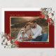 Celebrate the winter holidays with this red and gold photo Christmas card featuring a watercolor painting of poinsettia, holly and red berries. Easily personalize this holiday card with your photo and text.