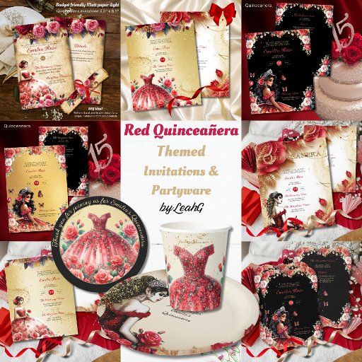 Red Gold Quinceanera Dress Vintage Parchment Theme