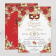 Red Gold Roses Floral Masquerade Ball Quinceanera Invitation