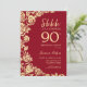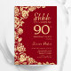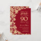 Red gold floral surprise 90th birthday party invitation. Elegant design featuring roses, faux gold foil and typography script font. Trendy invite card perfect for a stylish female bday celebration. Can be customised to any age. Printed Zazzle invitations or instant download digital printable template.