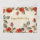 This lovely postcard says "Happy Mother's Day" and features beautiful red roses tinged with faux gold in a unique embossed look. The design is a vintage watercolor just right for remembering mum or another you wish to honour on this special day.