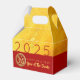 Modern design with golden textured paper (printed image) with vertical golden Chinese wishes + large 2025 in red + small Snake paper cut-out with yellow texts HAPPY NEW YEAR and Year of the Snake onto a red background. Design on gable favour box. You can easily change texts by clicking the customise button. Matching greeting card, holiday postcard and more soon... Perfect for a timeless and modern Chinese New Year of the Snake 2025.