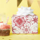 A Red And White Floral Pattern With A White Background.