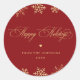Red & Gold Snowflakes Happy Holidays Custom Name Classic Round Sticker