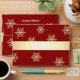 Red gold snowflakes return address design.