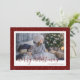 Custom red and gold photo Merry Christmas cards with calligraphy title and a red snowy photo frame. Easily personalise these photo Christmas cards with your image, family name and text.