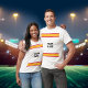Prepare your sports team for the game with this unisex white t-shirt. The shirt features a sports team theme with customised text on both sides with the team name, your name, and player number. There is a gold and red striped design on both sides of the shirt. You can personalise this template with your information and even edit it to change stripe colours or more. If you want custom-coloured stripes, please contact Sandy at admin@giftsyoutreasure.com Please note that these colours only work on the white t-shirt with no underbase. It works with the underbase t-shirts for all colours.