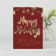 Red Gold Stars Happy Holidays Script Christmas Invitation