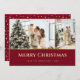 Elegant red and gold photo Christmas cards featuring two photos on the front and gold stars on a red background at the back. Easily personalise these modern photo Christmas cards with your images and text.