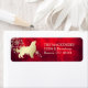 This distinctive return address label features a gold silhouette Bernese Mountain Dog image in front of a spray of ornate gold snowflakes. The image is placed on a gradient deep red background that seems to almost glow. Your custom text is in matching pale gold at the right of the image. Beautiful!