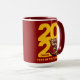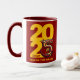 Celebrate the Year of the Snake in 2025 with this mug, which features the year 2025 styled in a bold bright yellow font, and AI-generated artwork of a stylised Asian serpent artistically standing in for the number 5 on a royal red background. Customise messaging as desired.